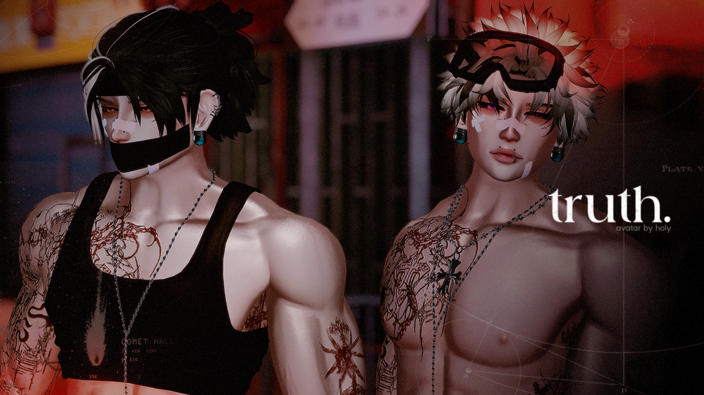 Accessories: Bauble Earrings, Bandaids, Chrome Hearts Necklace, Cross Necklace, Blindfold, Blindfold Up, Glasses, Goggles, Cat Ears, Arm Chains, Headband, Horns, Mouth Chain, Rolex, Tape, Dangel Tape